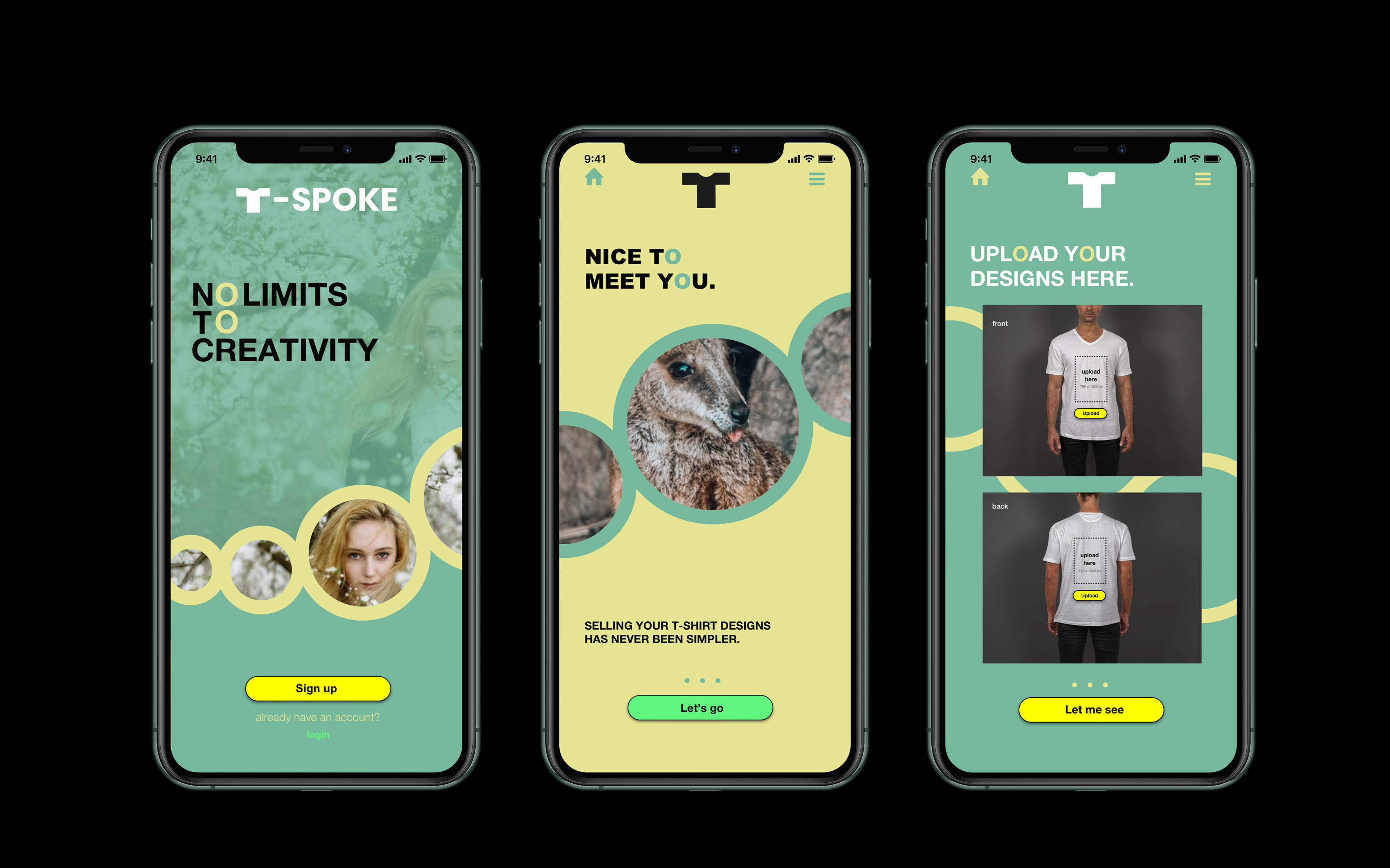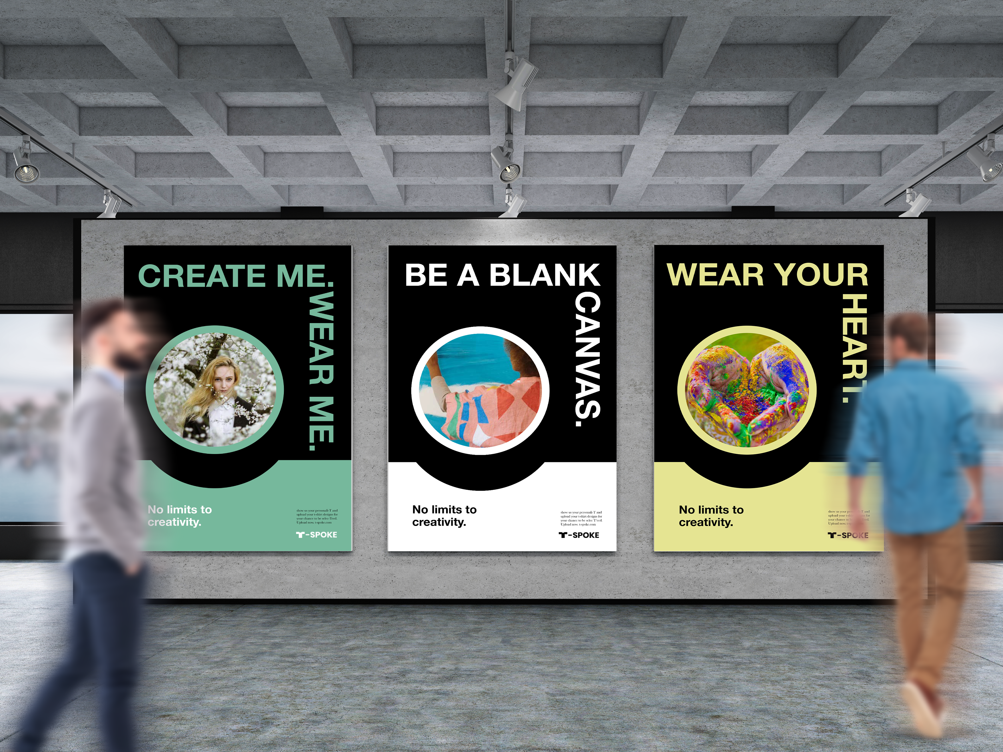 Fun & unique branding project for a start up online t-shirt company. Thought up by graphic designers, the idea is that young creatives submit their designs in hopes to be ‘selec-T’d’. T-Spoke then manufactures them ready to be sold online.